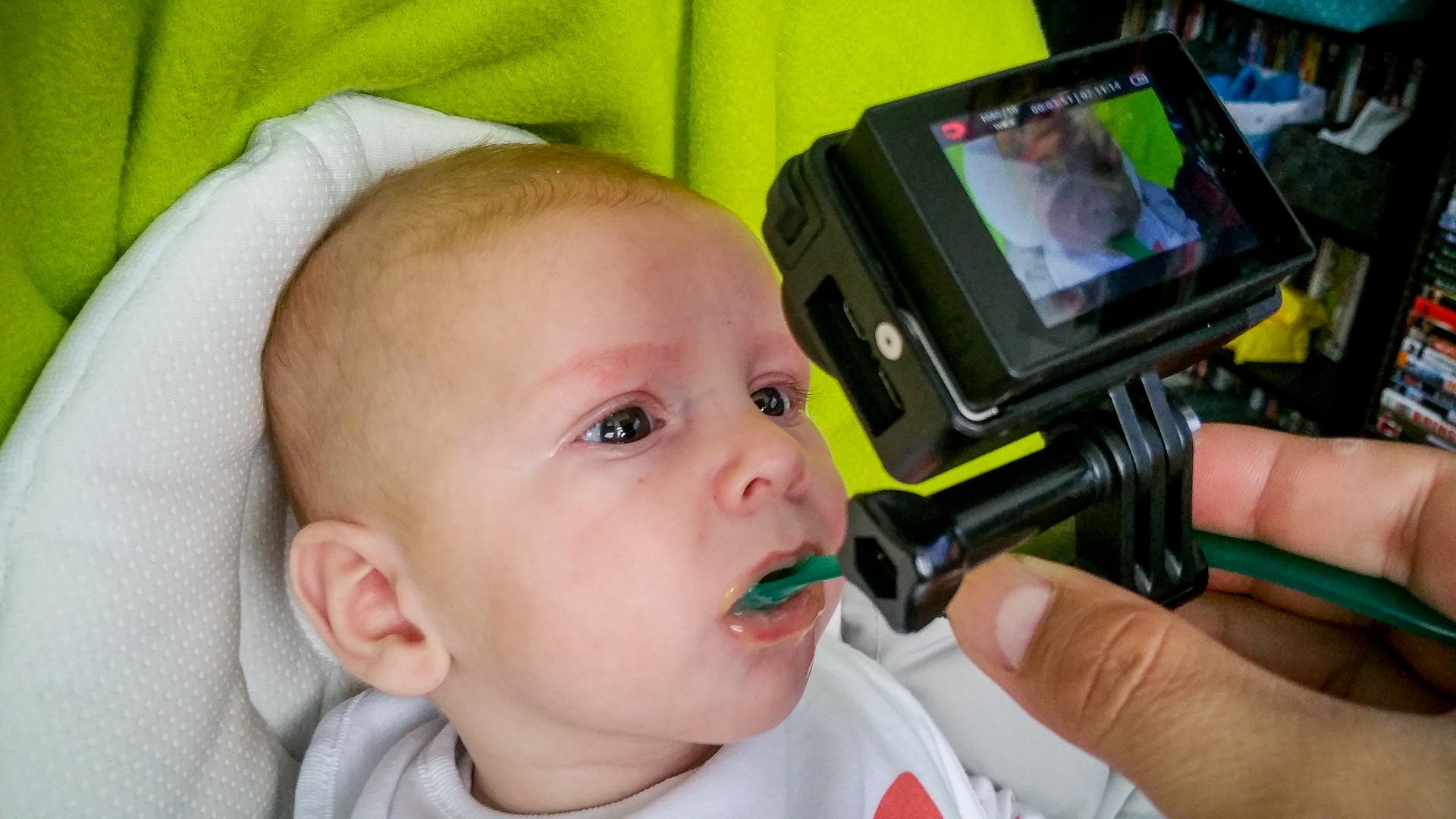 Vandaag m'n eerste fruithapje gehad, banaan, wat was dat lekker zeg. Ik zat zo vol dat ik meteen een flesje minder heb gedronken.