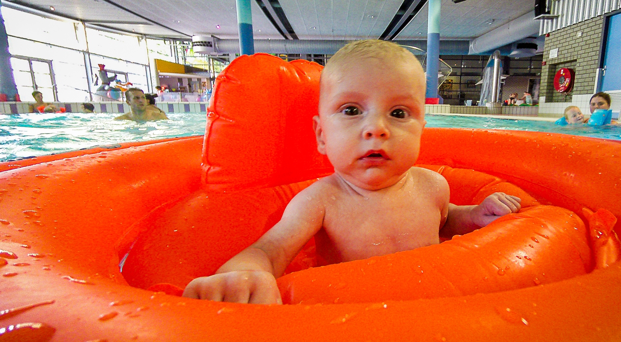 Vandaag ben ik voor het eerst met mama en papa mee wezen zwemmen. Papa heeft me ook even koppie onder gehouden en dat viel me alles mee. Ik heb nu een lekkere swim trainer waar ik heerlijk in kan dobberen.